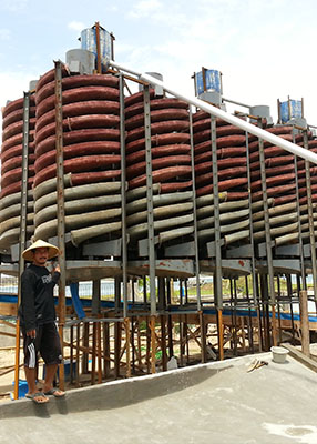 +more巖金礦分選案例巖金也稱(chēng)合質(zhì)金,產(chǎn)于礦山。金礦大都是隨地下涌出的熱泉通過(guò)巖石的縫細(xì)而沉淀積成,常與石英夾在巖石的縫隙中。重選法選金是自古以來(lái)歷史悠久、常用的一種選金方法了?,F(xiàn)代化的機(jī)械選金設(shè)備一般將離心機(jī)、跳汰機(jī)、螺旋溜槽、搖床等中選設(shè)備配合,作為聯(lián)合提金工藝的一環(huán),回收已經(jīng)單體解離的單體金。重選法選金...