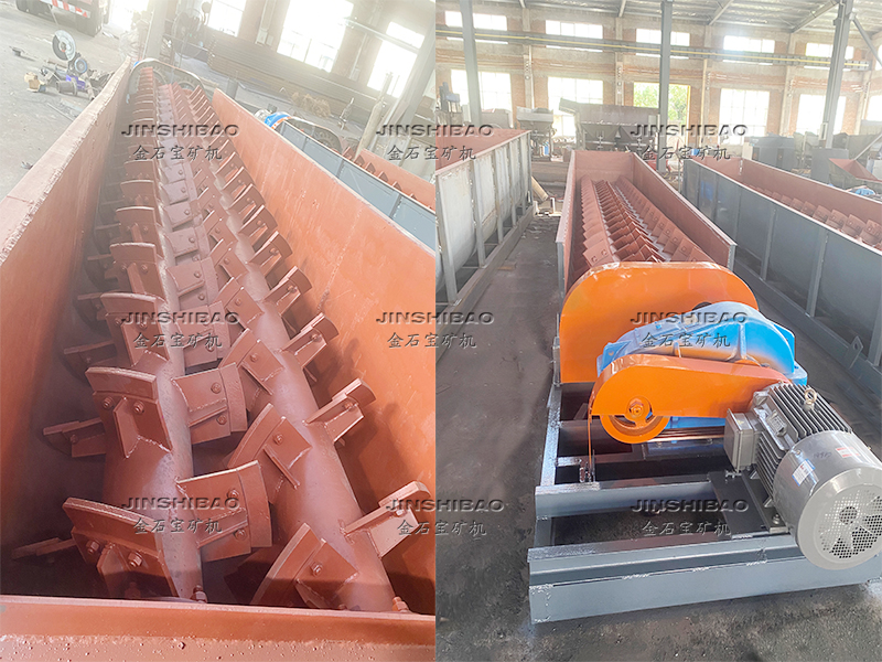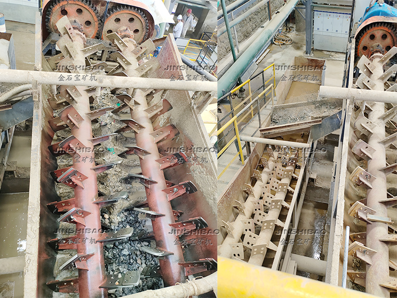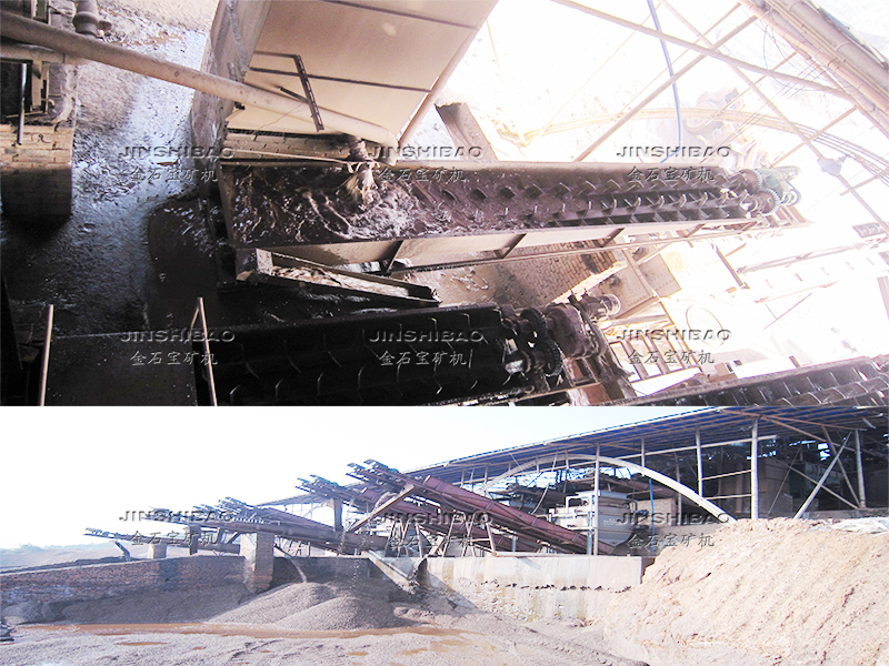本機呈傾斜安裝,礦物與水由進料口(進料口的位置由用戶自定)進入槽體,通過螺旋軸葉輪的攪動,達到礦石的清洗作用。清洗后泥漿及雜物通過溢流槽流出(溢流口位置用戶自定),礦石沉入槽底,由出料口(出料口位置用戶自定)排出。